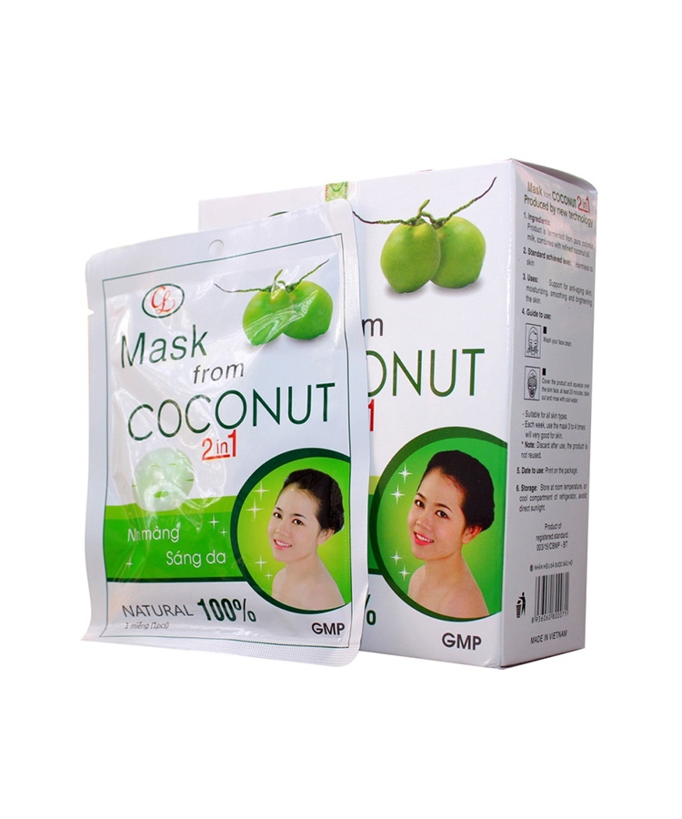 Mặt nạ dừa Coconut chứa nhiều Cytokinin và Acid lauric sẽ thẩm thấu vào sâu bên trong da giúp cân bằng độ pH, tạo liên kết mạnh mẽ giữa các mô da và cải thiện tông màu da mang đến cho bạn làn da trắng hồng và săn chắc tự nhiên. Đồng thời, mặt nạ dừa Cửu Long còn cung cấp cho da nguồn Vitamin và khoáng chất dồi dào giúp làm sạch da, ngăn ngừa mụn và đặc biệt bổ sung độ ẩm cần thiết giúp làn da bạn lúc nào cũng mềm mại, căng tràn sức sống.