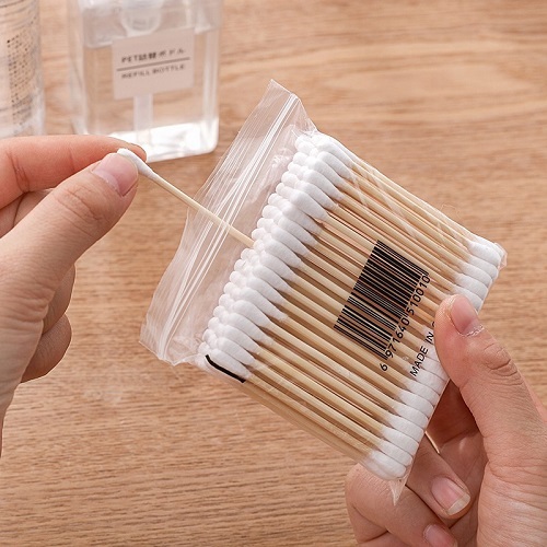 Sử dụng tăm bông để lấy tthuốc đặc trị sùi mào gà, tránh để chạm vào da tay